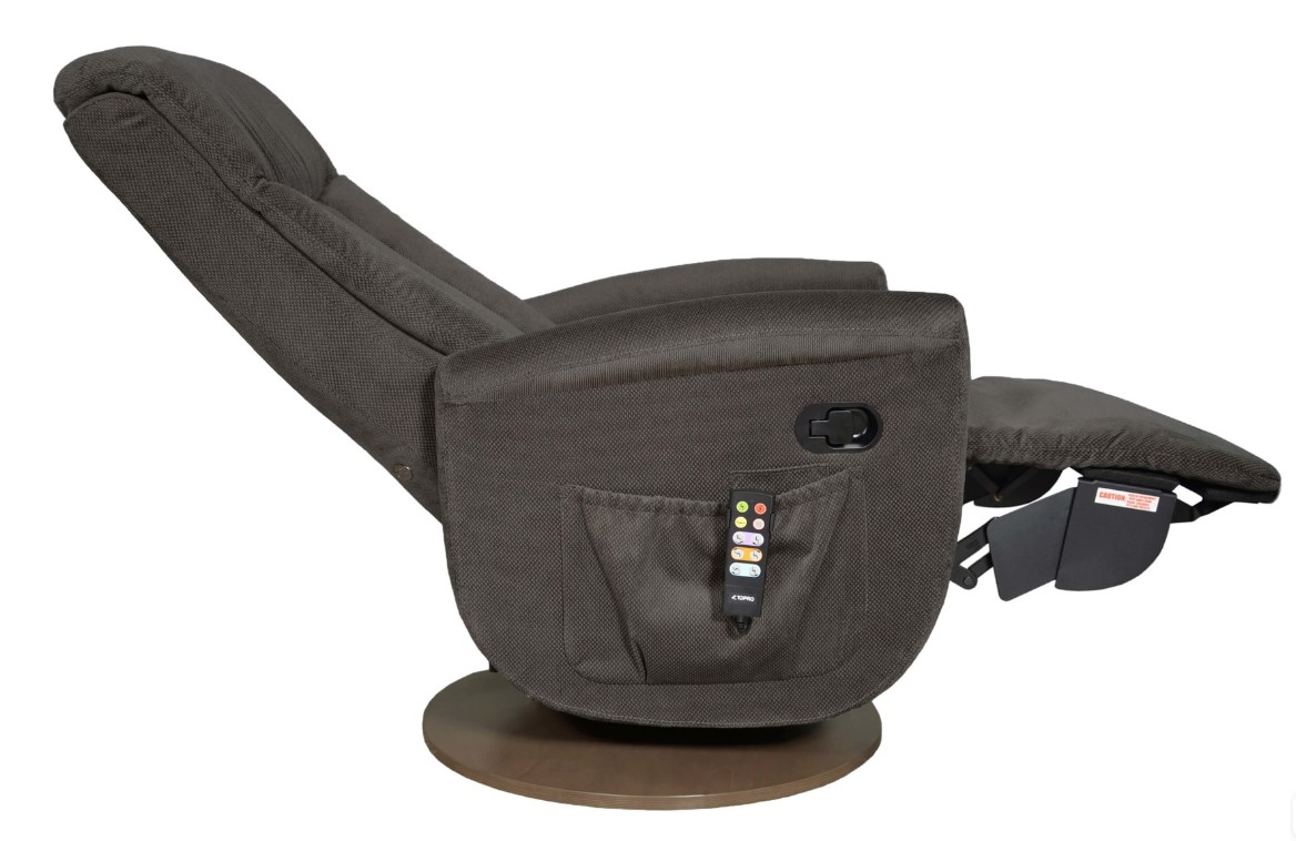 Eine Besonderheit des TOPRO Aufstehsessels Cortina ist seine drehbare Basis. Diese unterstreicht nicht nur das moderne Design des Sessels, sondern ermöglicht eine Drehbereich von 180°. So können Sie den Relaxsessel zum Beispiel zwischen Esstisch und Fernseher platzieren und seine Ausrichtung situationsabhängig anpassen. Die Sitzheizung rundet die Ausstattung des Cortina ab. Genießen Sie an kalten Tagen eine behagliche Wärme im Gesäß- und Lendenbereich oder entspannen Sie Ihre beanspruchte Muskulatur nach einem anstrengenden Tag. Der Bedienschalter für die Heizung und die Sesselverstellung und weitere persönliche Gegenstände finden in der seitlichen Sesseltasche Platz und sind dort immer griffbereit zur Hand. Ebenfalls immer gut zu erreichen ist die USB-Schnittstelle, mit der Sie zum Beispiel Ihr Smartphone oder Tablet aufladen können, während Sie im Sessel sitzen.