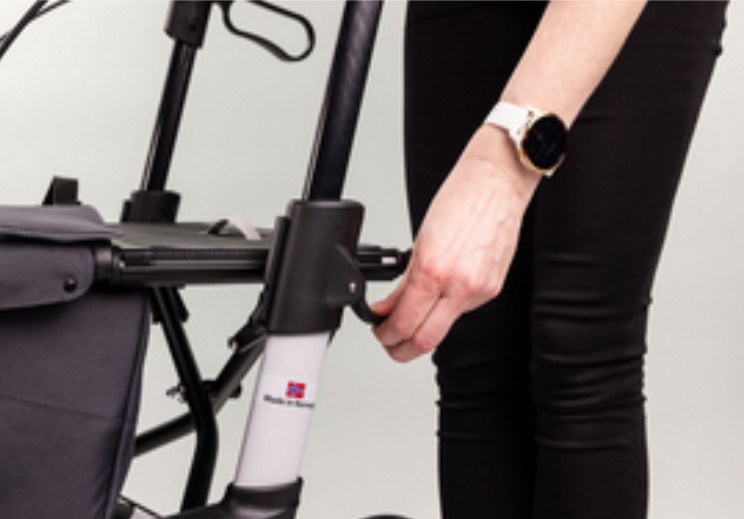 Die neue, intuitive Höheneinstellung der Handgriffhöhe verbessert durch die patentierte Konstruktion die Produktsicherheit und Benutzerfreundlichkeit. Dies erleichtert die Handhabung und den Transport, was unseren Kunden mehr Komfort und Sicherheit bietet.