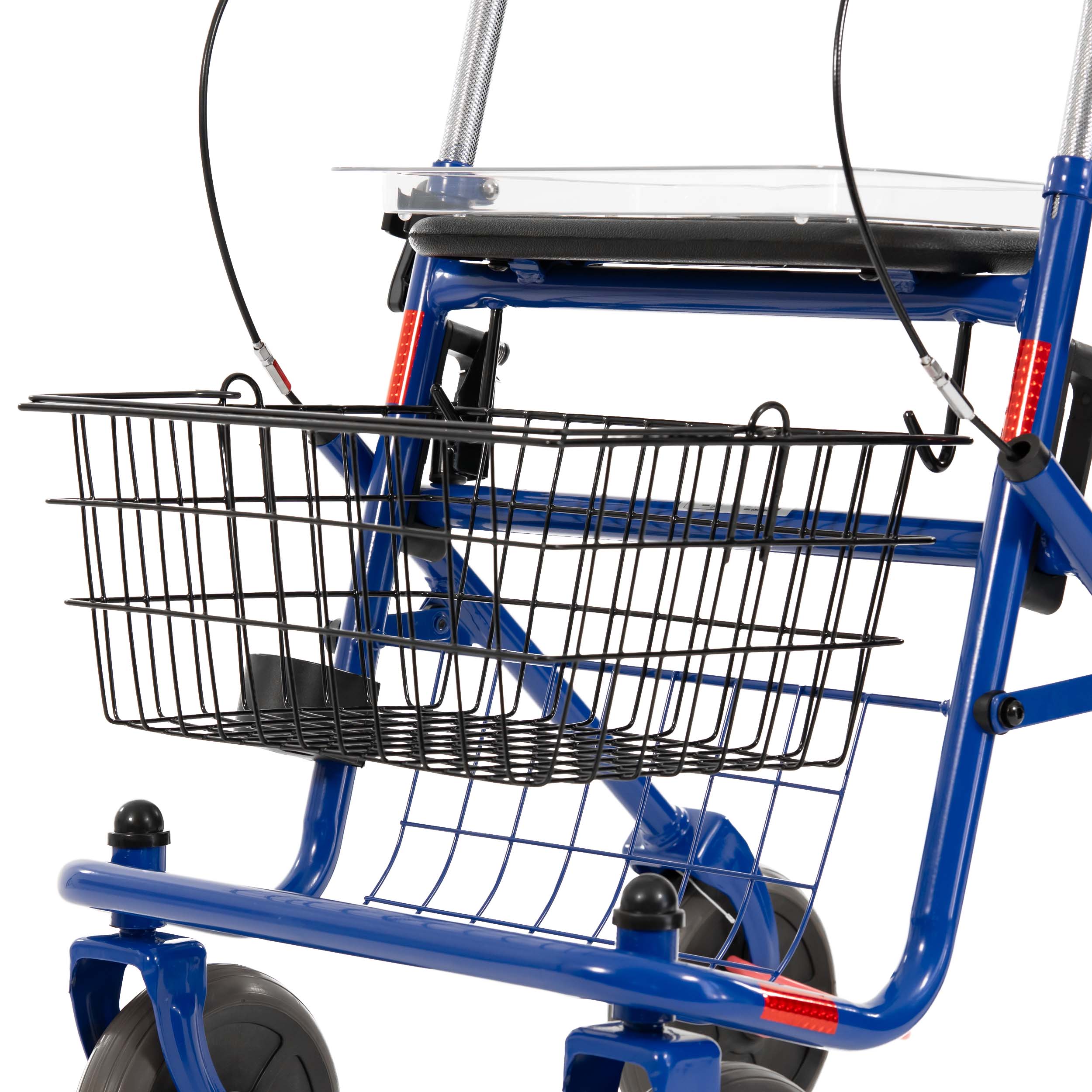 Mit einem praktischen Stockhalter, dem Korb und dem aufsteckbaren Tablett ist der Vita ein sehr gut ausgestatteter Rollator. Der Korb unterstützt Sie beim Einkaufen und lässt sich leicht am Rollator fixieren, während das Tablett beispielsweise zum Transport von Speisen im heimischen Bereich benutzt werden kann.