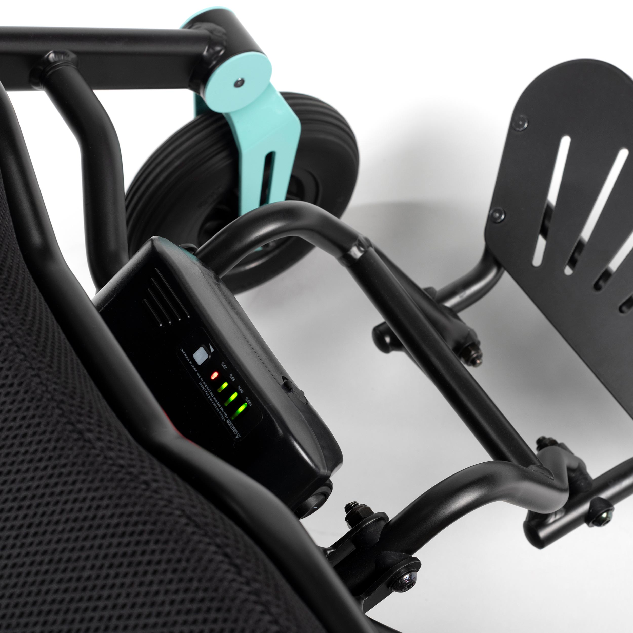 Sie können die Akkus extern laden, brauchen den Rollstuhl also nicht in der Nähe einer Steckdose abstellen. Ausgestattet ist der elektrische Rollstuhl mit Lithium-Ionen-Akkus, die besonders robust und langlebig sind.