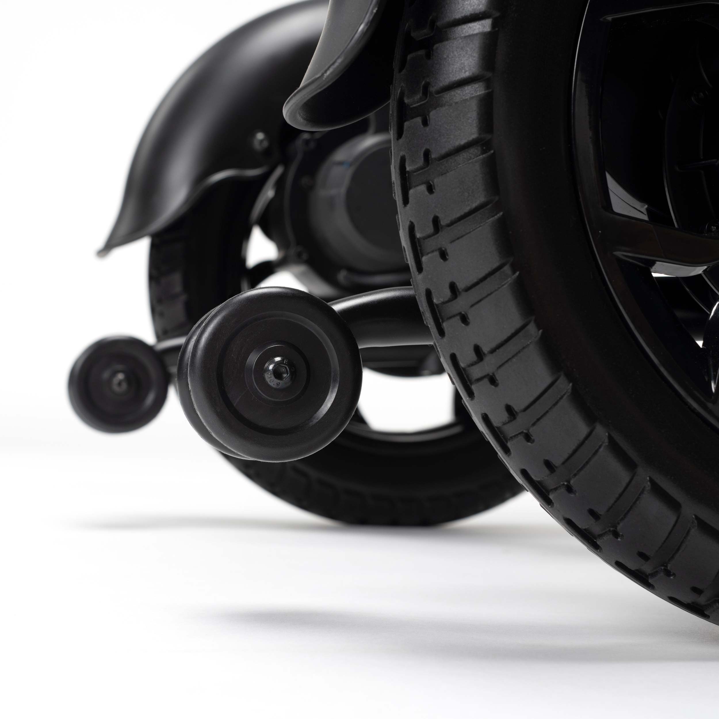 Der elektrische Rollstuhl ist mit einem kraftvoll schwarzen Aluminiumrahmen ausgestattet. Wählen Sie aus sechs verschiedenen, glänzenden Farbakzenten. Diese geben dem Elektrorollstuhl je nach Wahl eine elegante, kraftvolle, dynamische, feurige oder zeitlose Erscheinung und wirken dabei stets modern.