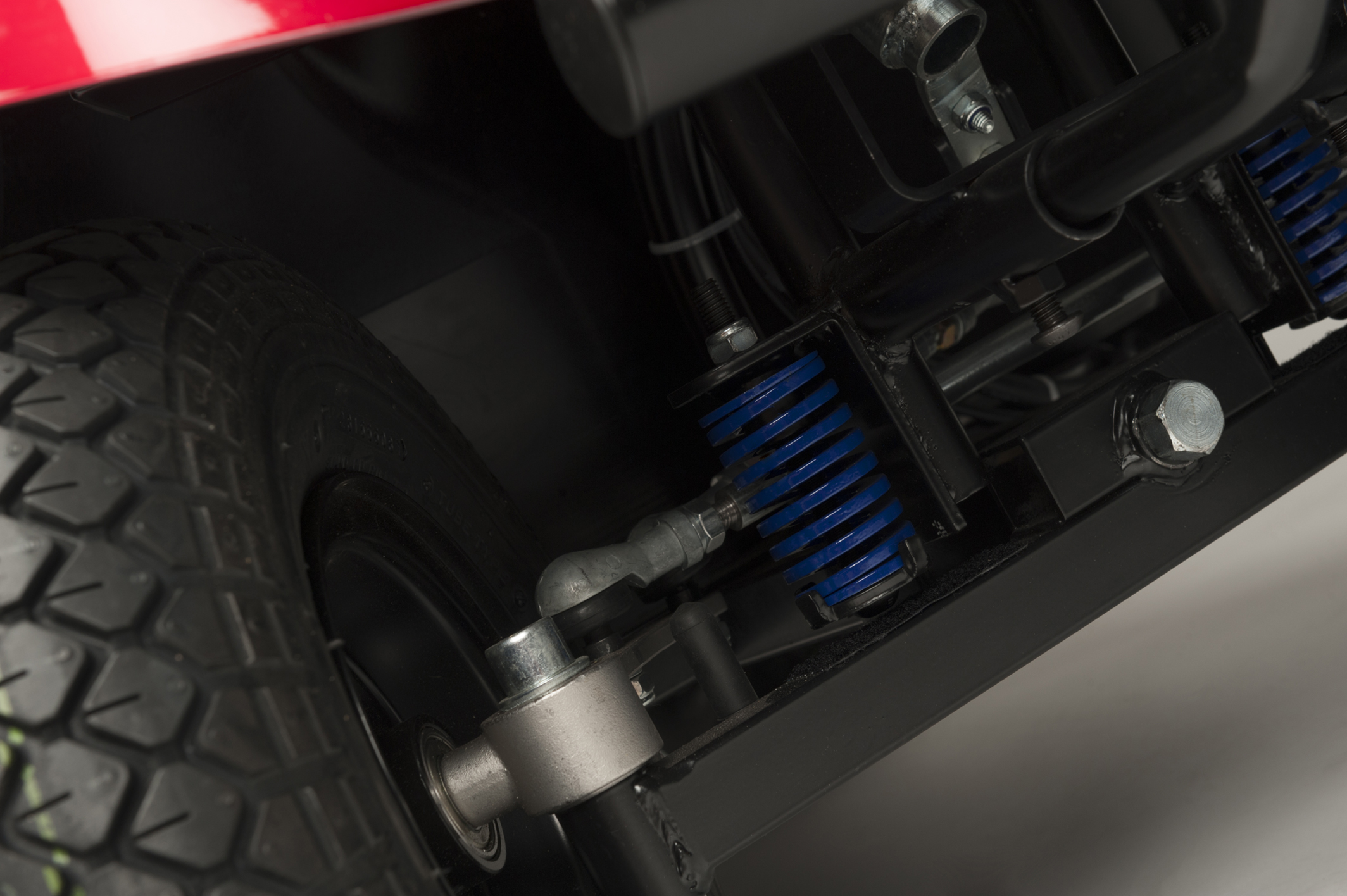 Für besonderen Fahrkomfort auf allen Wegen im Outdoor-Betrieb sorgen eine Zentralfederung der Hinterachse und die beidseitige Federung der Lenkräder. Sollten Sie doch einmal gegen ein Hindernis stoßen, fängt ein vorn angebrachter Stoßdämpfer den Aufprall ab.