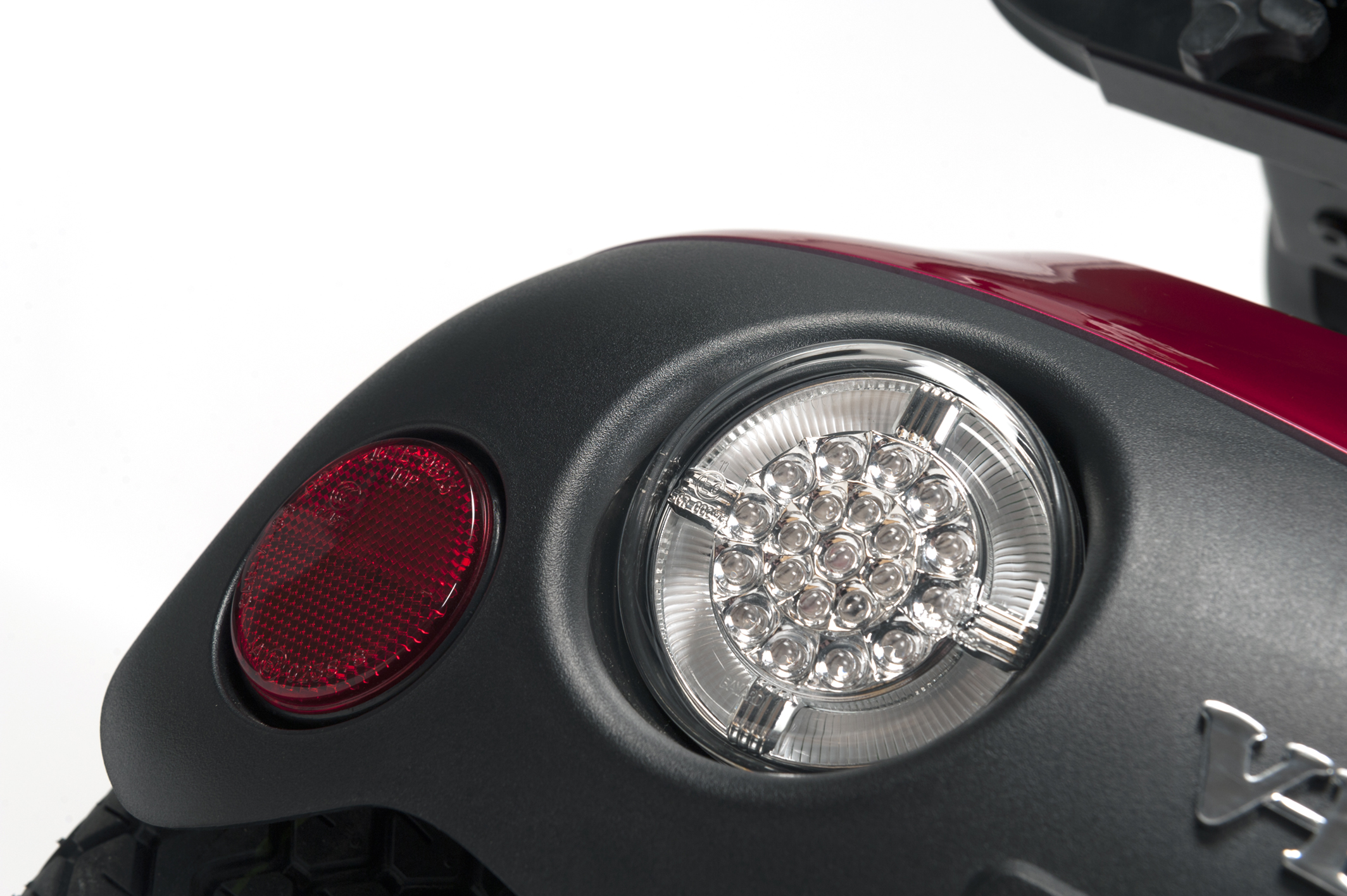 Mit kleinen, attraktiven Anpassungen folgt der Senioren E-Scooter aktuellen Trends und wirkt frisch und lebendig. Die Heckpartie und das Logo auf dem Frontlenker erstrahlen in einem moderneren Design und wirken dabei doch zeitlos. Vermeiren setzt mit den neuen Farben Umbra-Grau und Hellelfenbein neue Akzente, die langlebige Eleganz verheißen. Das sportlich auffällige Rot bleibt auch in der neuen Modellgeneration erhalten.