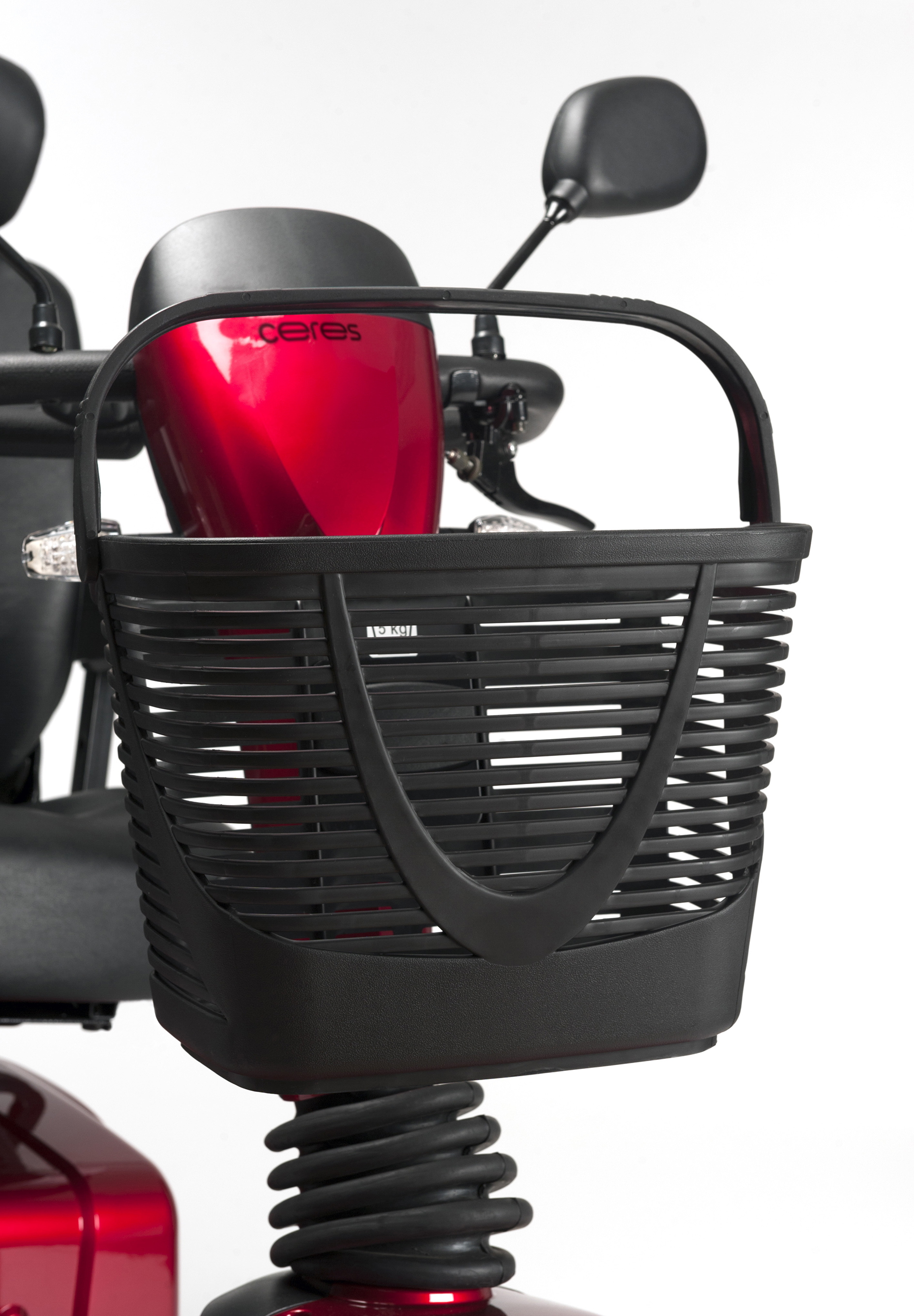 Das Seniorenmobil Ceres verfügt außerdem über einen vorne angebrachten Korb, der einfach zu erreichen ist. So können Sie Ihren Einkauf und/oder Ihre persönlichen Gegenstände leicht mit sich führen.