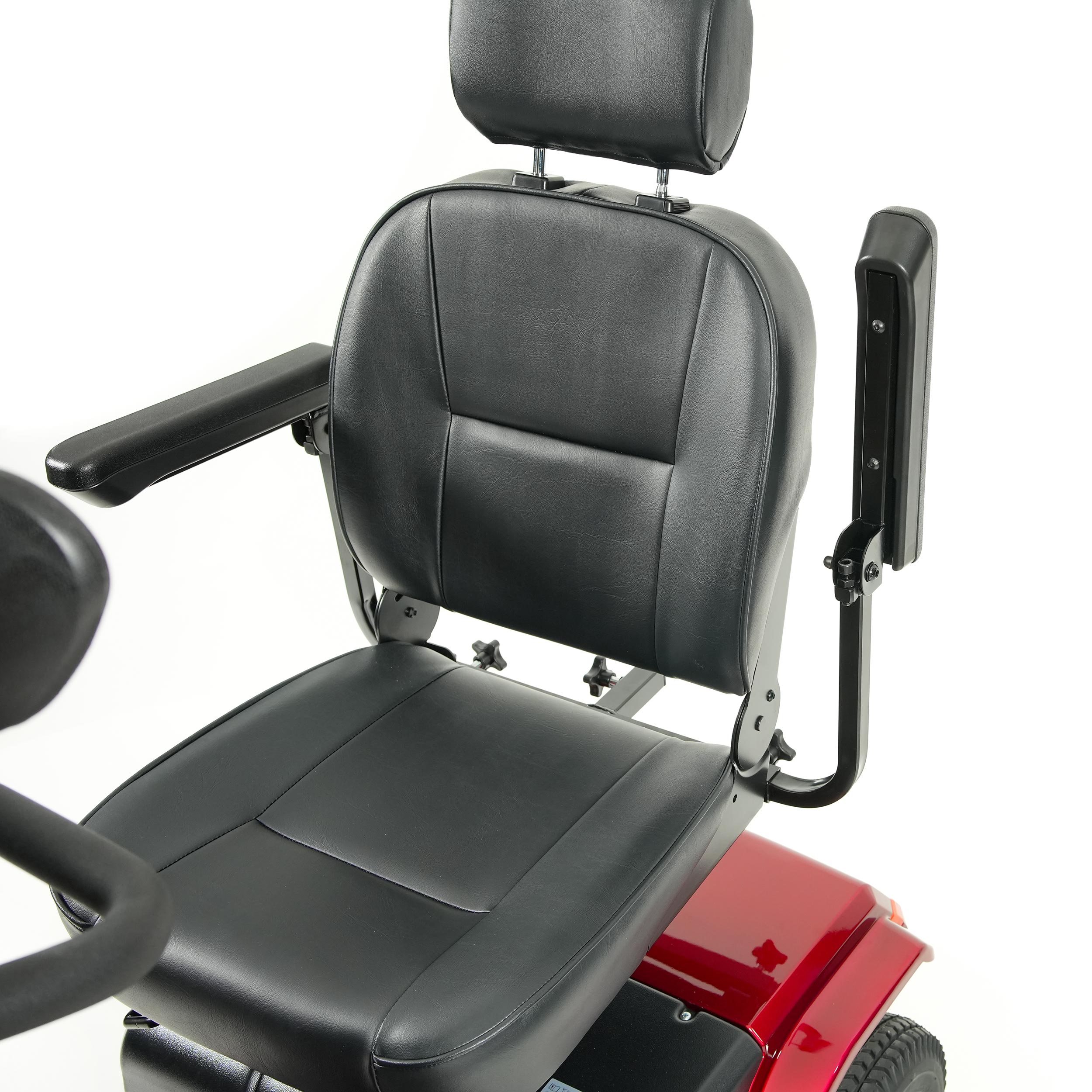 Doch nicht nur Kraft und Reichweite, sondern auch die hervorragenden Fahreigenschaften zeichnen das Elektromobil Lion aus. Für Fahrkomfort sorgen die Einzelradfederung vorne und die perfekt gefederte Hinterachse. Der bequeme Sitz mit 7-fach verstellbarer Kopfstütze ist wie ein Thron, auf dem man auch auf langen Strecken bequem sitzen kann, und sorgt dafür, dass Sie auch bei längeren Fahrten entspannt Ihr Ziel erreichen. Zum Auf- und Absteigen lässt sich der Sitz drehen und die Armlehnen sind abschwenkbar.