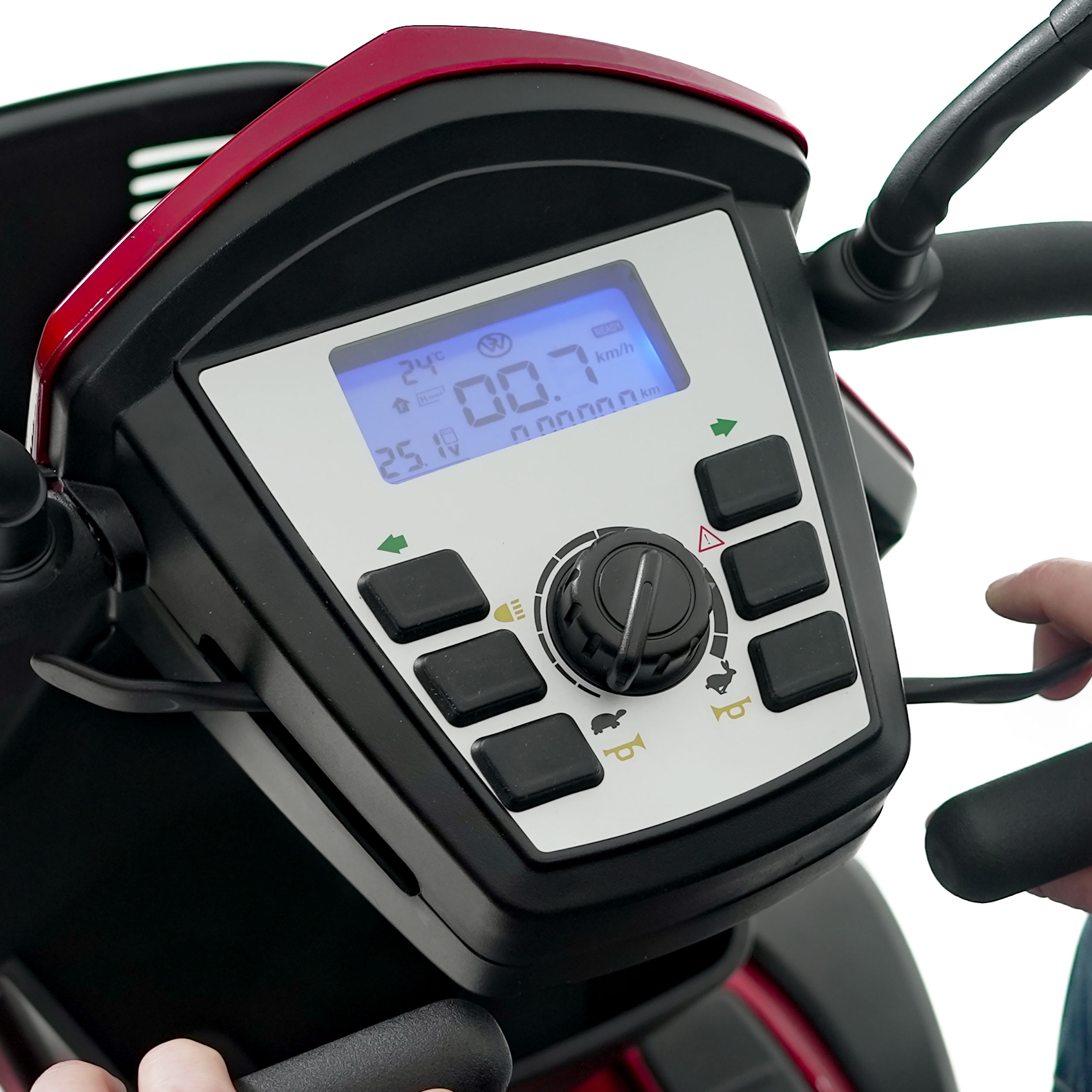 - Belastbarkeit: Das Elektromobil ist bis 160 kg belastbar
