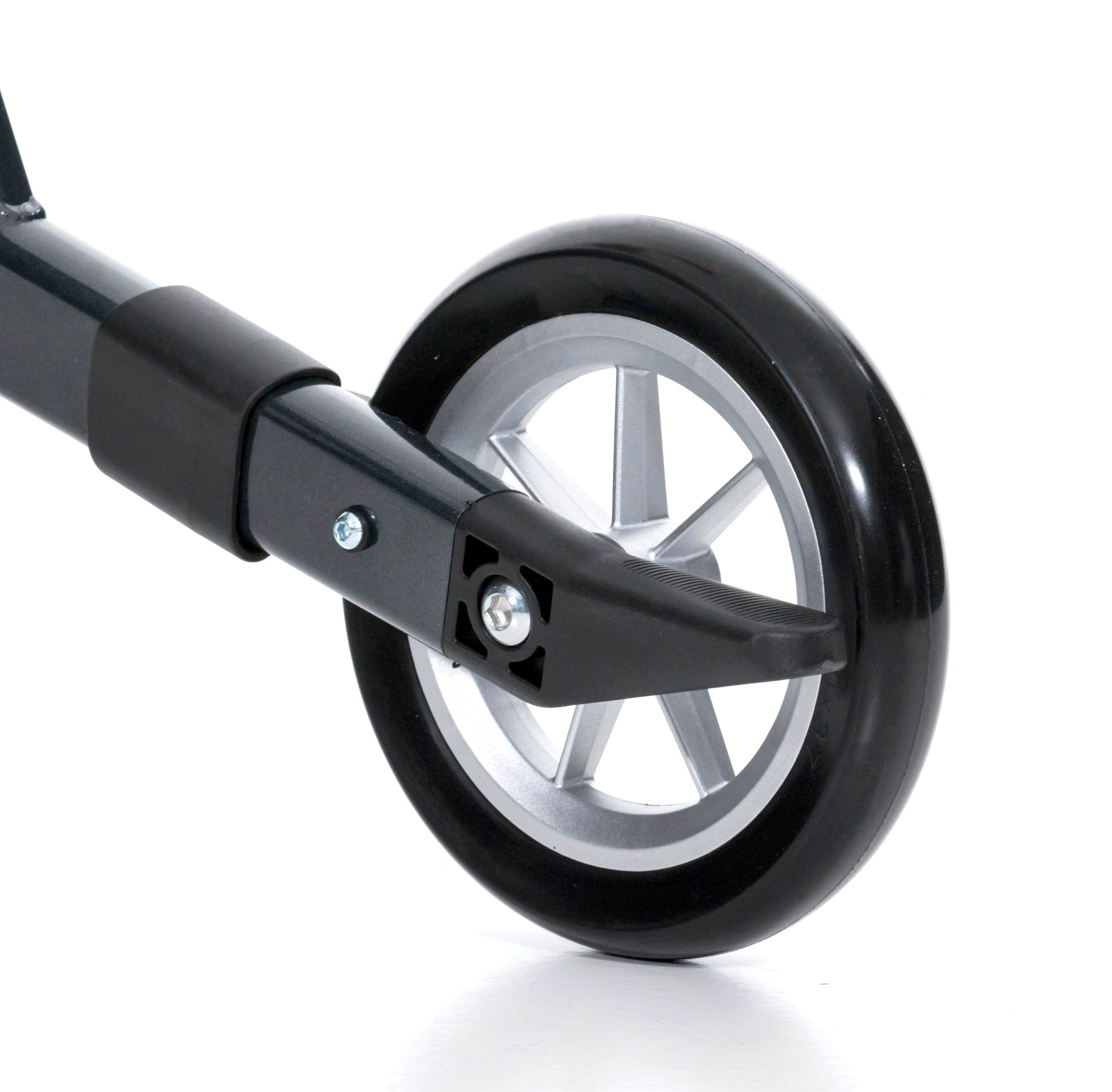 En outre, vous avez la possibilité de sélectionner les pneus du déambulateur robuste : En plus des roues standard résistantes en caoutchouc (TPE), des roues souples en polyuréthane sont disponibles pour plus de confort de conduite.