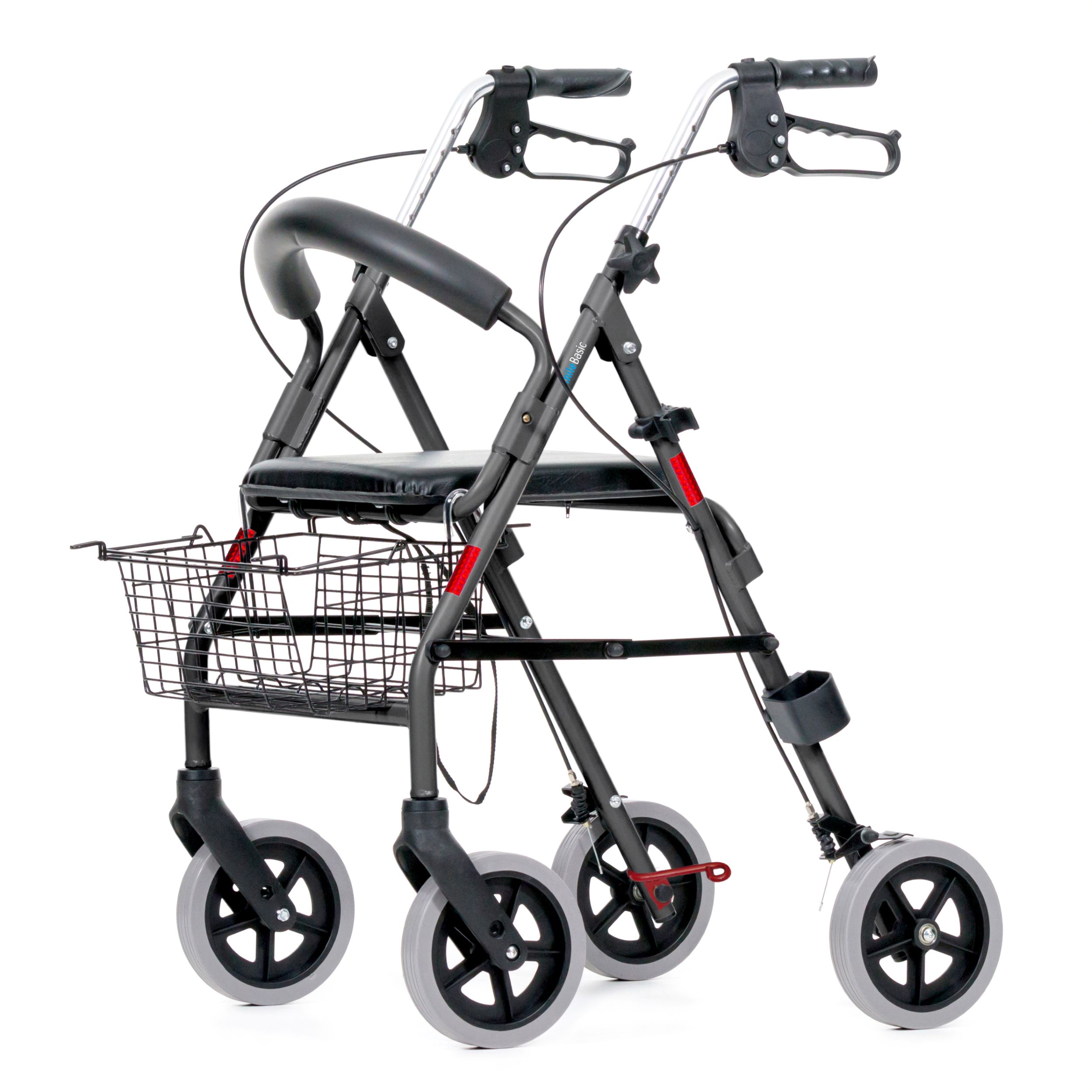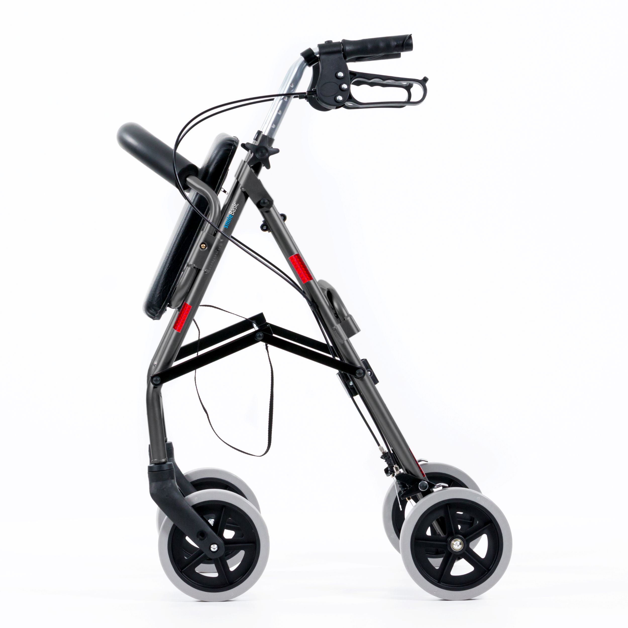 Le mécanisme de pliage pratique du Pan assure une grande flexibilité et une adaptation parfaite au quotidien. Il permet de replier le déambulateur léger de manière compacte, facilitant ainsi son rangement dans une voiture ou à la maison. Le pliage s'effectue sans grand effort. En position de marche, ce déambulateur est très stable et peut supporter une charge maximale de 120 kg, permettant ainsi son utilisation par des personnes de forte corpulence. Les pneus pleins increvables garantissent une conduite agréable. Entre-temps, vous pouvez bien sûr prendre place sur l'assise confortable. Contrairement à d'autres modèles de cette gamme de prix, l'assise du Pan est particulièrement bien rembourrée. De plus, le déambulateur est équipé d'un dossier qui sert de support et rend l'assise encore plus confortable. Les freins fiables et réglables assurent une stabilité et un maintien sécurisés à l'arrêt.