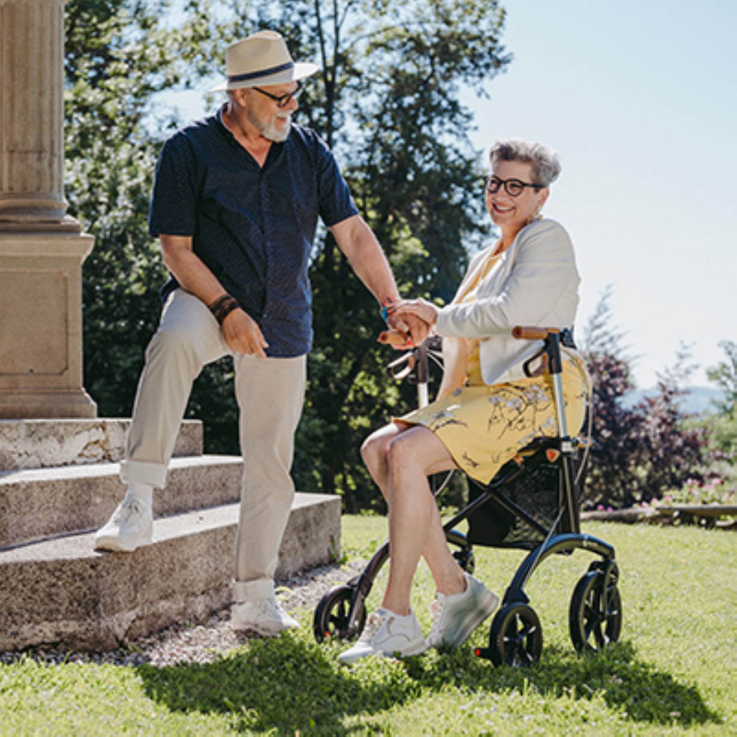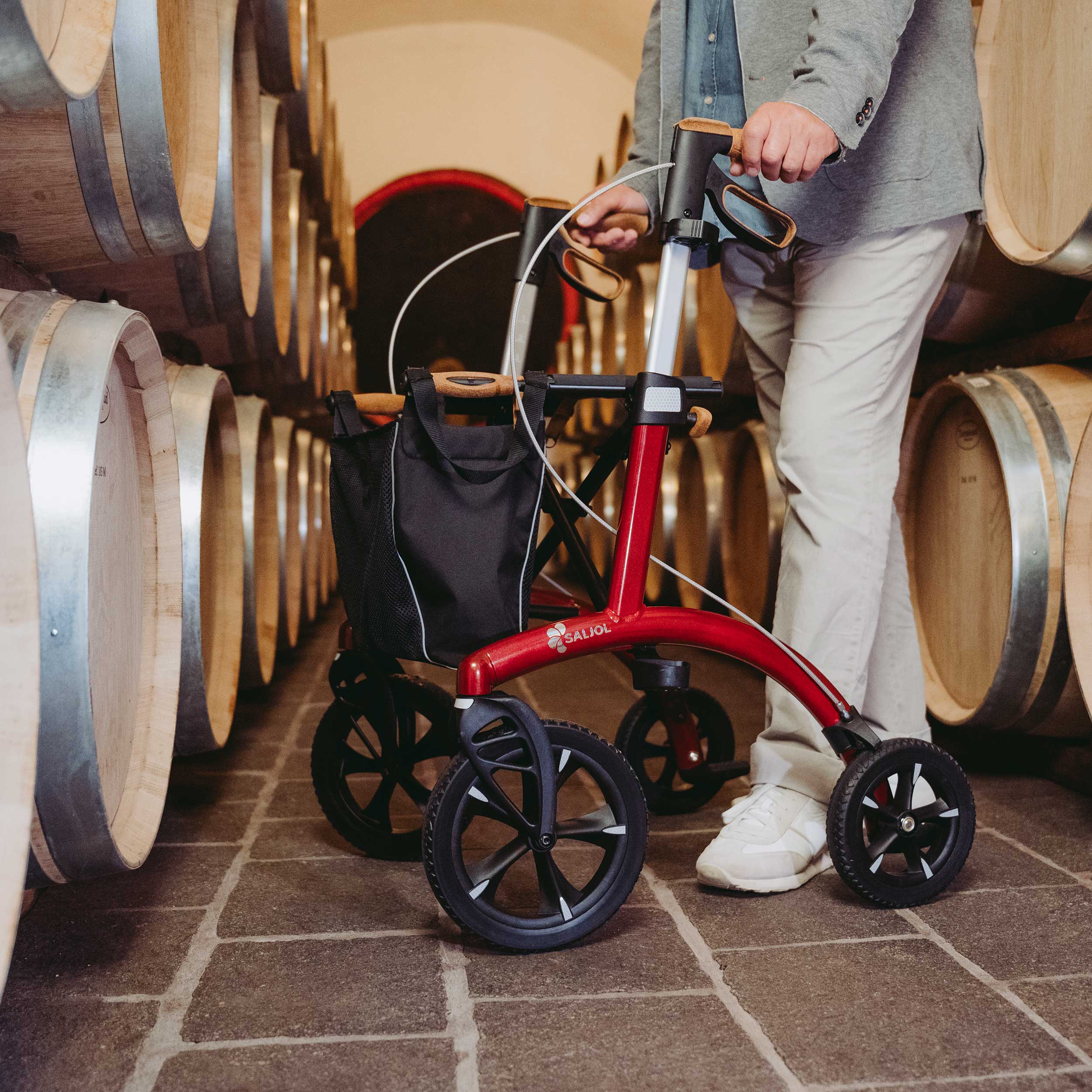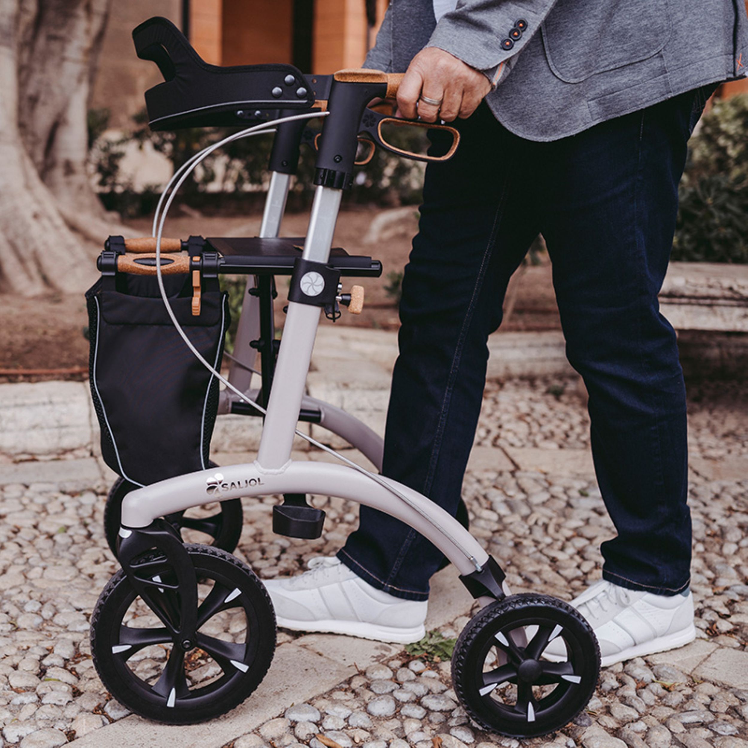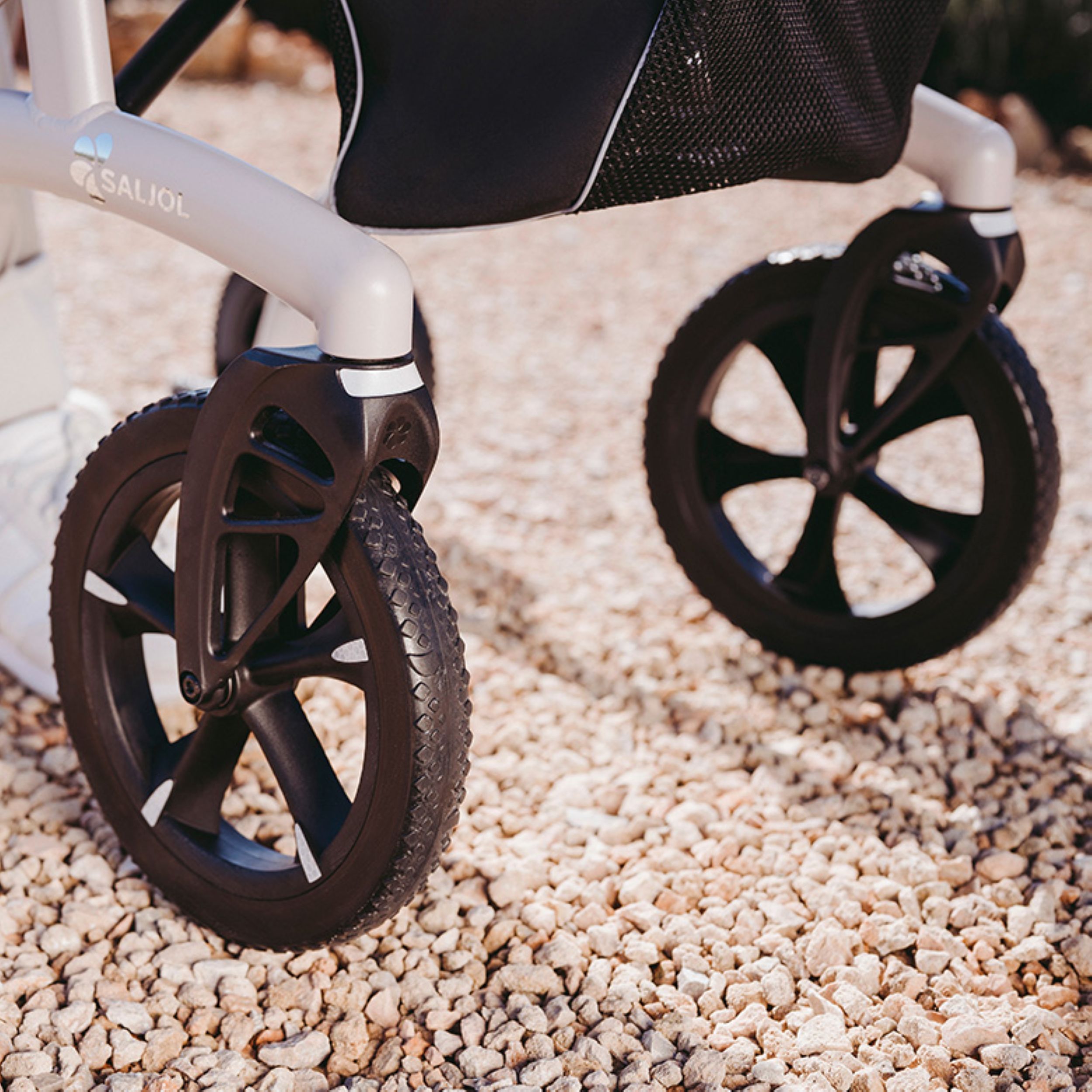 Que ce soit pour une escapade à la campagne, une virée en ville, ou pour circuler dans votre appartement ou au café : le SALJOL Allround AR s'adapte à toutes les situations. Sa légèreté le rend extrêmement maniable. Ses roues de 25 cm jouent un rôle clé : plus grandes que les roues standard mais plus compactes que les roues tout-terrain, elles assurent une conduite fluide et absorbent les chocs sur les sols irréguliers. Grâce à leurs pneus profilés, vous bénéficiez d'une meilleure adhérence. La structure du cadre n'est pas seulement esthétique ; elle est conçue pour amortir les vibrations, faisant de ce déambulateur premium le compagnon idéal partout où vous allez.