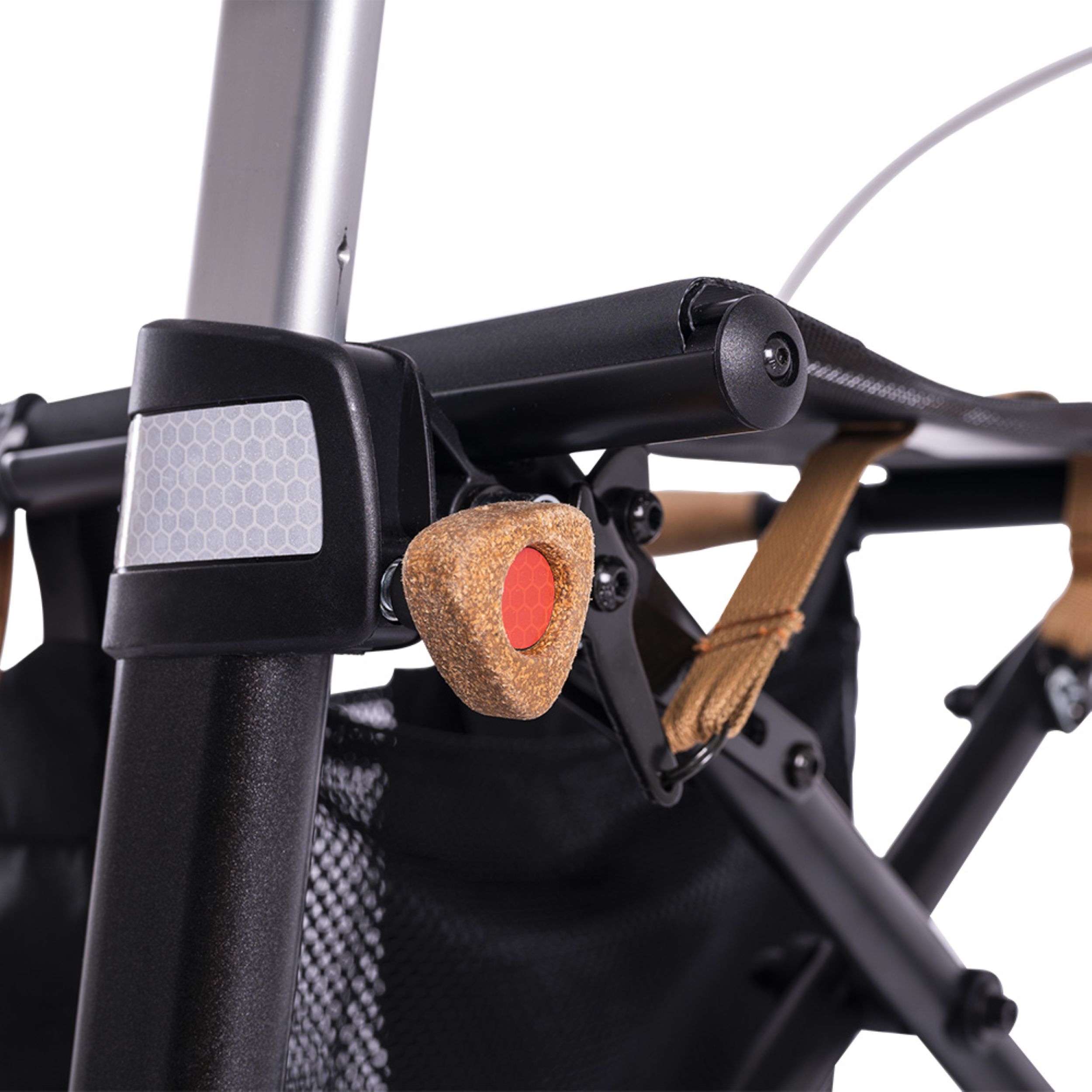 En plus de l'éclairage LED, plus de 30 réflecteurs sont répartis sur le cadre, les poignées, les pédales de basculement et le sac. Ils garantissent votre visibilité à distance, même dans l'obscurité, tout en restant parfaitement intégrés au design discret de l'appareil.