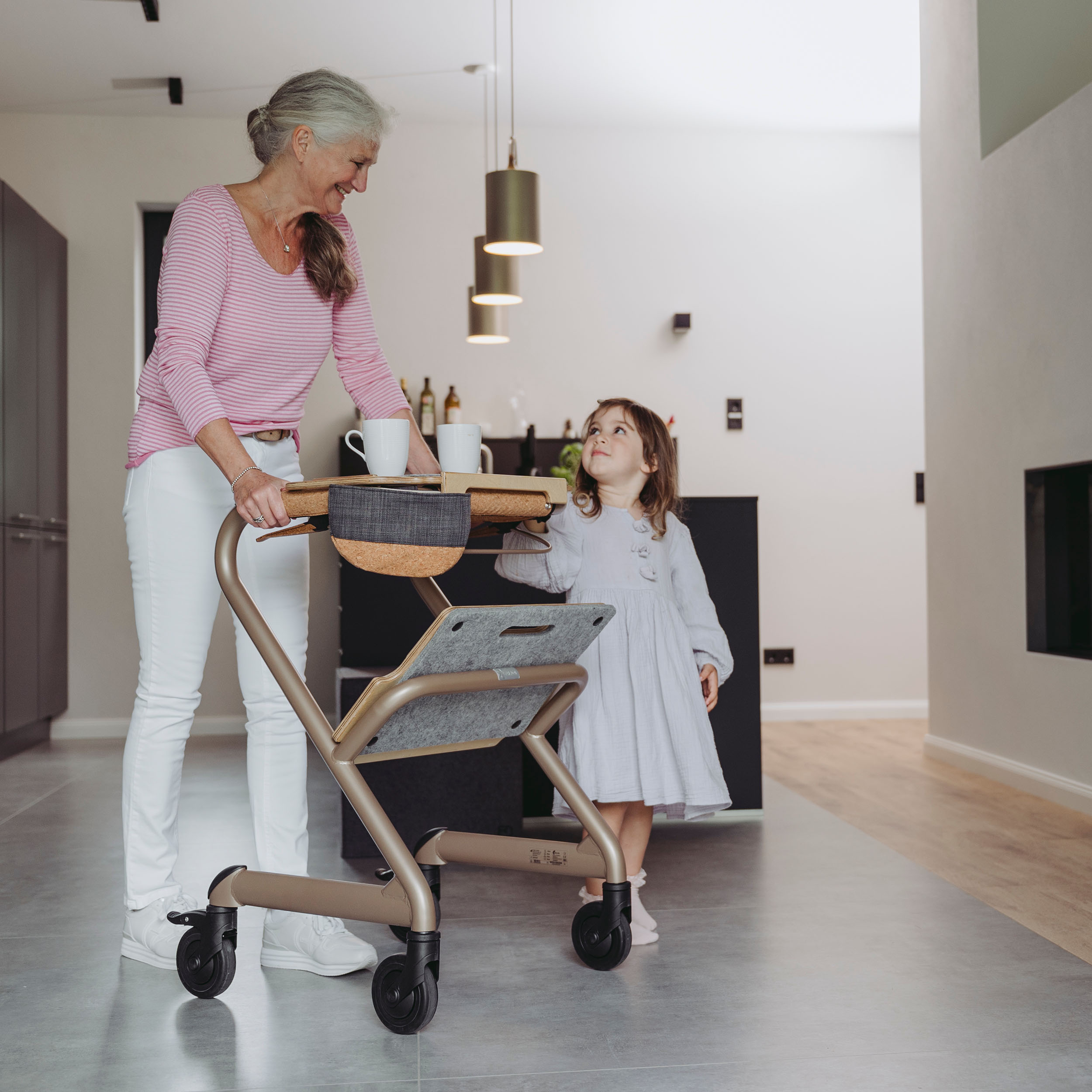 Le déambulateur d'intérieur est disponible dans les couleurs élégantes Champagne Gold et Velvet Grey.