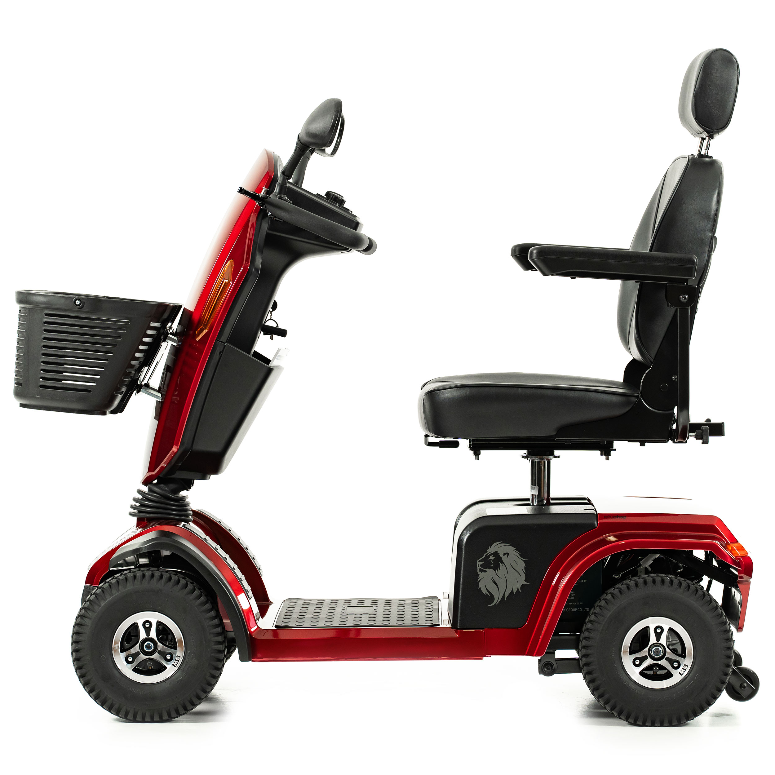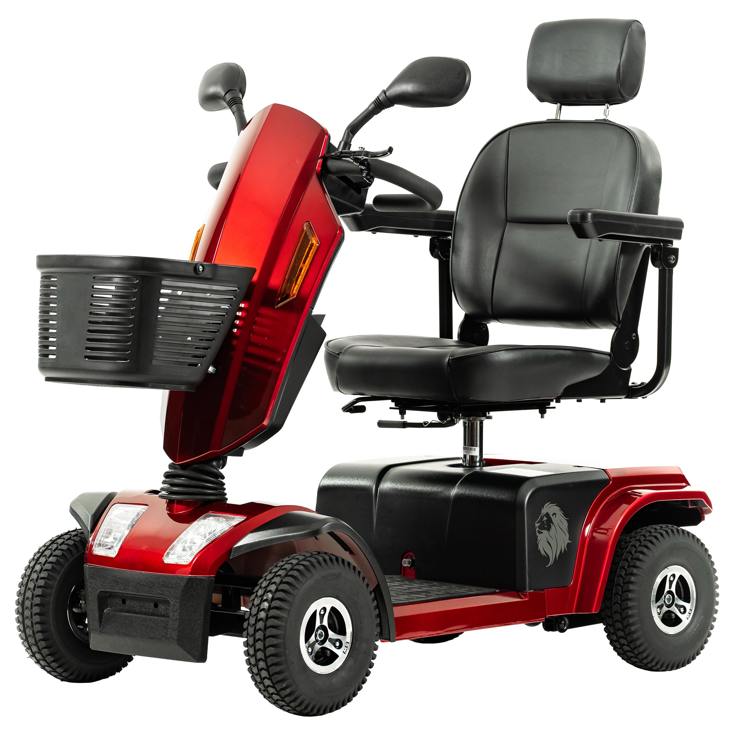 Au-delà de sa puissance et de son autonomie, ce sont ses excellentes propriétés de conduite qui distinguent le scooter Lion. Le confort de route est assuré par une suspension indépendante à l'avant et un essieu arrière parfaitement suspendu. Le siège confortable, doté d'un appuie-tête réglable sur 7 positions, est un véritable trône qui garantit une assise relaxante même sur de longues distances. Pour faciliter l'installation, le siège est pivotant et les accoudoirs sont escamotables.