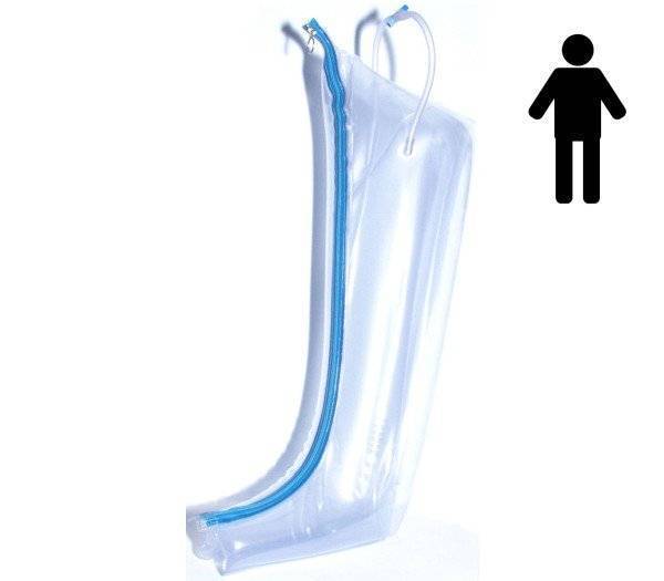 Orthèse gonflable pour adultes. 3/4 de long avec ou sans semelle selon le choix. Entoure la cheville en plus de la jambe. Selon le modèle, la semelle est gonflable.