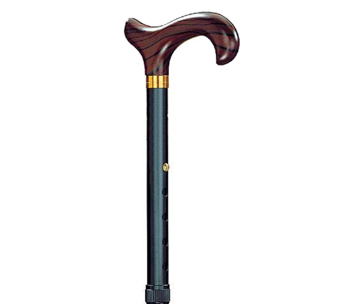 Aluminium-Faltstock mit ergonomisch geformtem Soft-Derbygriff aus Kunststoff, 4-teilig, Packmass 30 cm, verstellbar 85 cm – 95 cm, im Klarsichtetui, inkl. Gummipuffer.